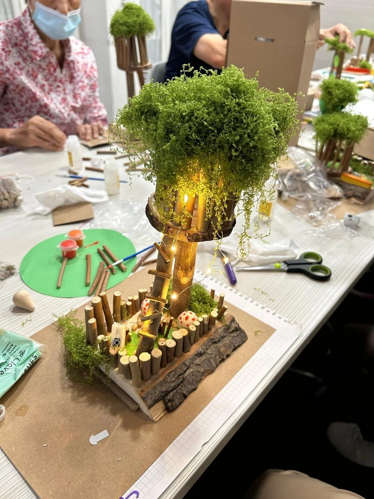 Step into a world of creativity and nature with our Nature-Themed Architecture programme, designed to engage both male and female seniors in a hands-on, sensorial experience. Participants craft their own miniature treehouses, using natural materials like wood, moss, and bark, bringing their imagination to life.